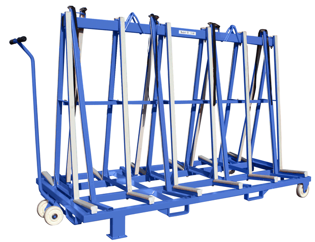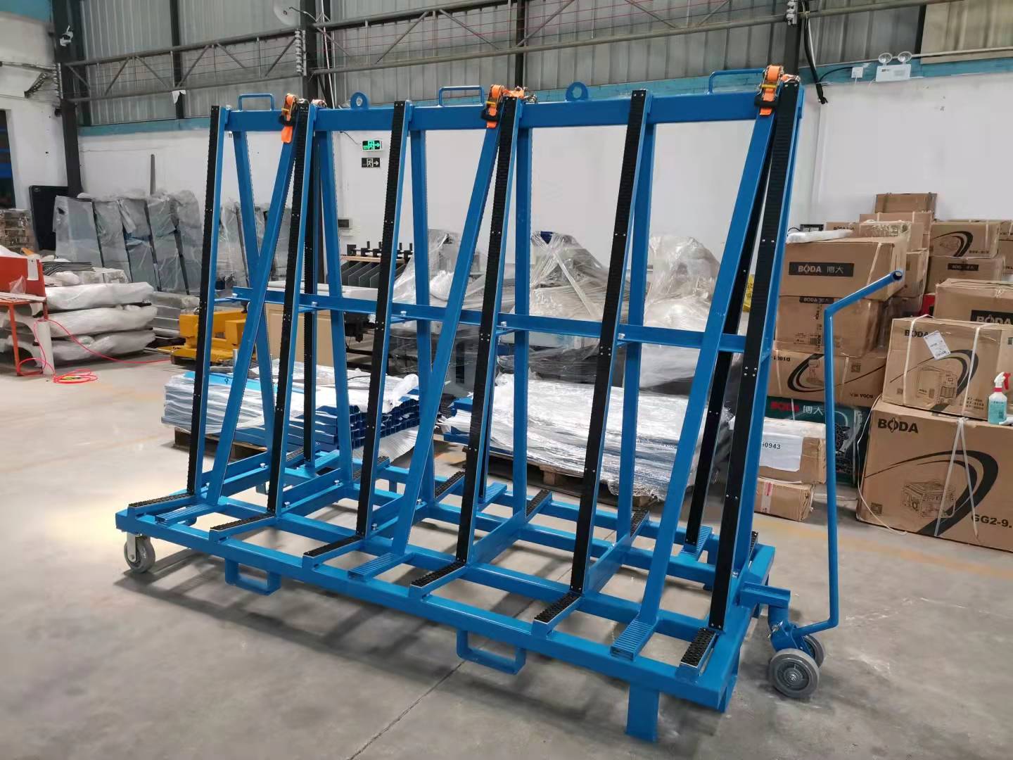 此設計用于廠區內外的板材運輸和儲存,支架表面覆蓋一層橡膠層,保護板材免于刮傷。